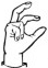 На ћирилици написано ЗОРАНА СИКИРАШ састоји се из 13 слова [?]. Исписано ћириличном једноручном азбуком за глувонеме: